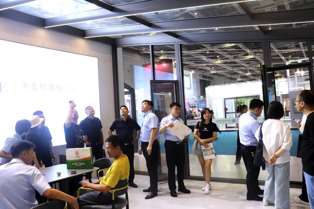 8月5日中国国际门窗幕墙博览会进行中,展馆内人潮涌动,观众纷纷驻足索美特展位,索美特极简阳光房符合时代潮流和深层次的精神需求,吸引着观众深入了解索美特产品的特点和优势。