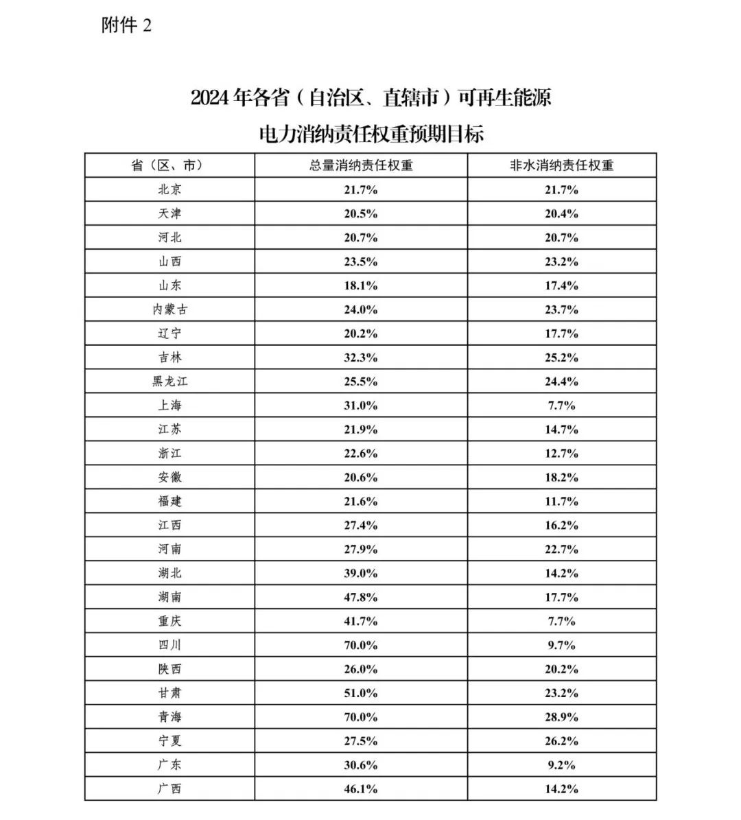 附件2:2024年各省(自治区、直辖市)可再生能源电力消纳责任权重预期目标