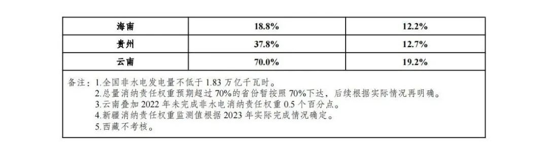 1.2023年各省(自治区、直辖市)可再生能源电力消纳责任权重
