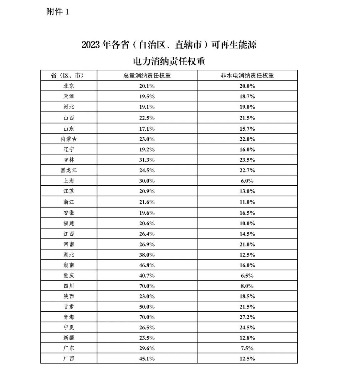附件1:2023年各省(自治区、直辖市)可再生能源电力消纳责任权重