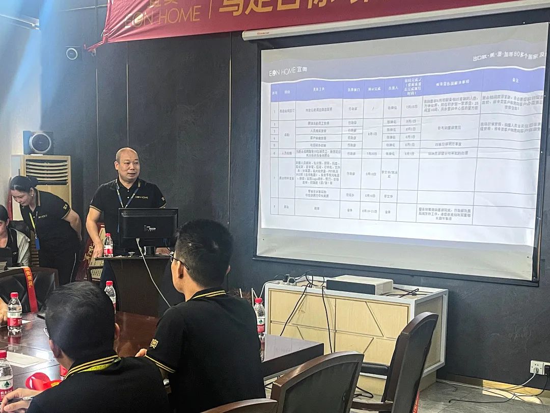 大家激情澎湃的喊出宜奥家居的口号,为本次东莞展会项目启动会拉开序幕,紧接着由周珊老师给大家介绍了这次展会的参展项目与项目人员分配等事项。