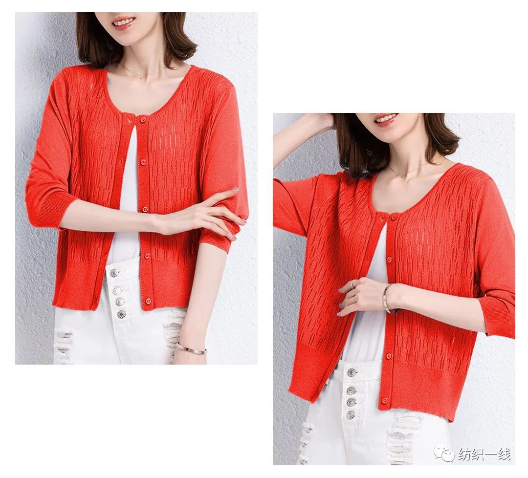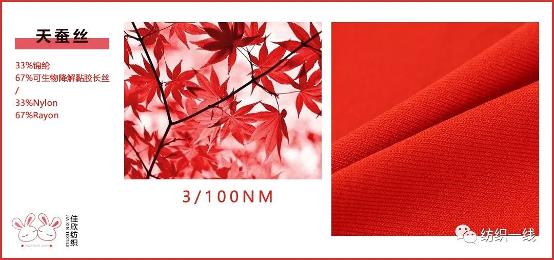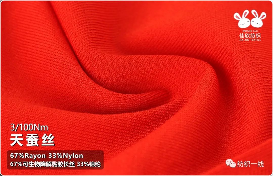 天蚕丝具有较好的保湿性、透气性、抗紫外线功能以及抑菌功效,针织天蚕丝面料中含有天然蛋白质纤维以及多种氨基酸成分,属于天然的绿色健康面料,该面料在与人体接触时具有较高的舒适性,将其制作为服饰穿着时会与身体产生沙沙作响的声音,所以针织天蚕丝也被称之为丝响。其天然成分使天蚕丝还具有防螨、抗菌、防过敏等功效,可以有效的防止细菌的和螨虫的滋生,一定程度上保护了身体的健康。