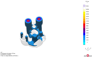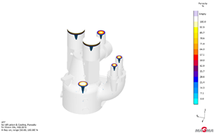 通过计算机模拟铸件充型过程,可以看出改工艺采用底注式浇注系统,钢液平稳进入型腔,快速上升,整个充型过程无返流、卷气、飞溅等现象,减少充型过程钢液二次氧化,有效避免气孔夹砂等铸造缺陷。如图23所示。