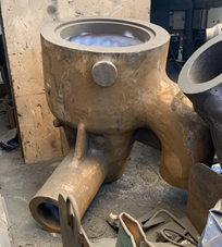 该中压联合汽阀铸件铸造工艺经过生产验证,造型过程操作方便,铸件壁厚符合尺寸公差要求,内腔无粘砂缺陷,表面夹渣、裂纹较少。产品如图24所示,铸件本体无缩松缩孔等缺陷,铸件化学成分、机械性能均达到顾客规范要求,且产品批量验证合格,证明该铸造工艺的造型方案、冒口设计、防粘砂措施以及浇注系统设计是合理有效的,产品铸造工艺设计合理。