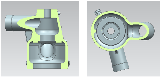 3)支管泥芯的设计考虑到下芯的尺寸控制及难易程度,设计了上下两部分分别下芯的方案,如图16所示;
