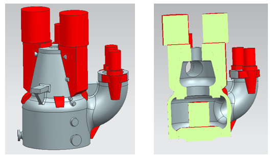 从铸造工艺看,铸件需补缩热节较多,内腔等复杂部位容易出现夹渣、气孔、裂纹、偏芯等铸造缺陷,因而铸造工艺设计难度很大。本文将对上述难点,进行铸件铸造工艺设计讨论。