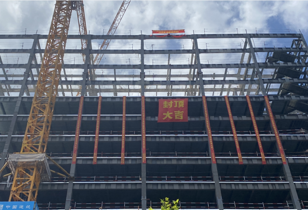 7月31日,第三分公司承建的华东师范大学教育发展大楼项目地上主体钢结构全部完成封顶,标志着项目建设步入新阶段。