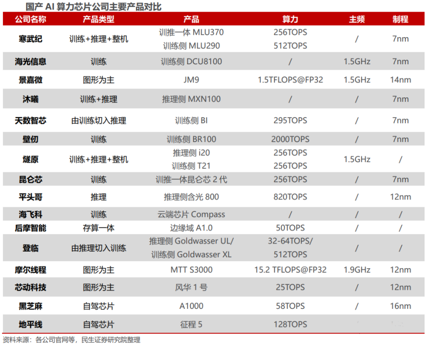 4、国产AI算力芯片正起星星之火