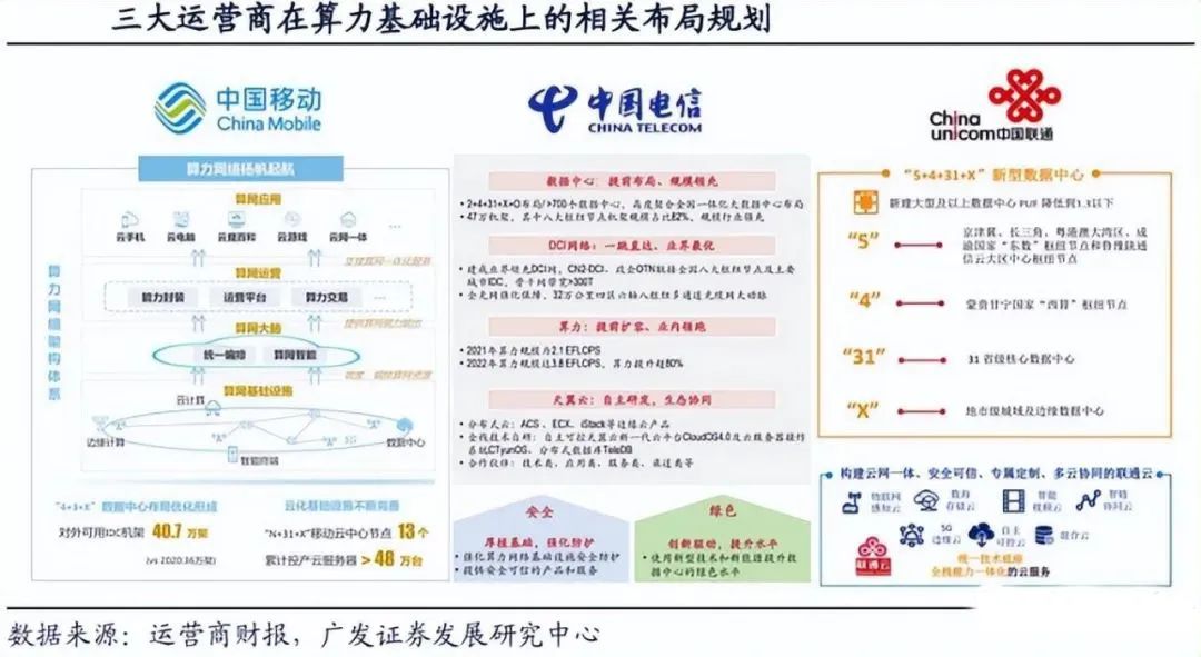 作为算力基础设施建设的主力军,三大运营商目前已经进行前瞻性的基础设施布局。