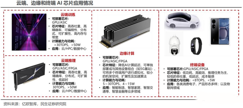 边缘和终端主要部署推理芯片,承担推理任务,需要独立完成数据收集、环境感知、人机交互及部分推理决策控制任务。