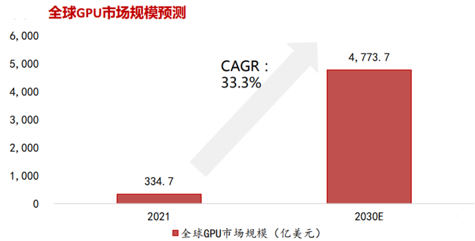 根据VerifiedMarketResearch报告,2021年全球GPU芯片市场规模已经达到了334.7亿美元,并预计到2030年将达到4,773.7亿美元,CAGR高达33.3%。