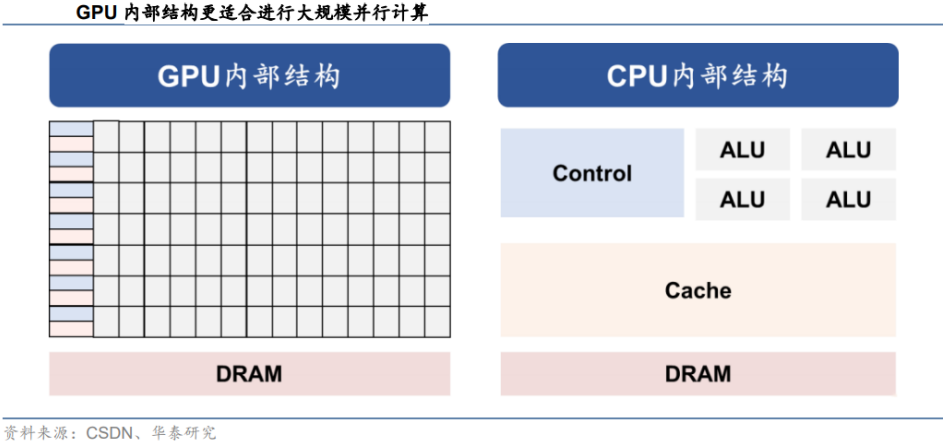而从GPU的计算方式来看,由于GPU采用了数量众多的计算单元和超长的流水线,因此其架构设计较CPU而言,更适合进行大吞吐量的AI并行计算。