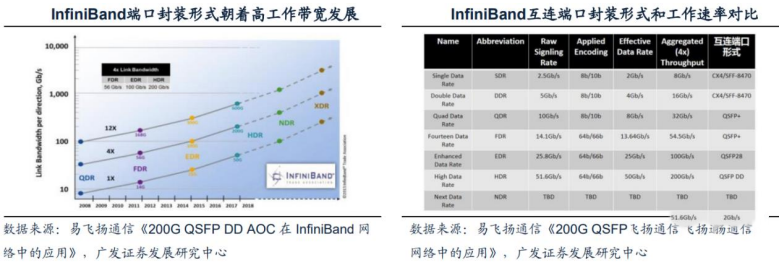 相比传统的以太网络,带宽及时延都有非常明显的优势。(一般InfiniBand的网卡收发时延在600ns,而以太网上的收发时延在10us左右,英伟达推出的MetroX-3提升长距离InfiniBand系统带宽至400G)。