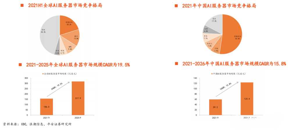 据IDC数据,2021年全球AI服务器市场规模为156亿美元,预计到2025年全球AI服务器市场将达到318亿美元,预计22-25年CAGR将达19.5%。