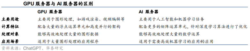 AI服务器是采用异构形式的服务器,如CPU+GPU、CPU+TPU、CPU+其他的加速卡等。而普通的服务器是以CPU为算力的提供者,采用的是串行架构。