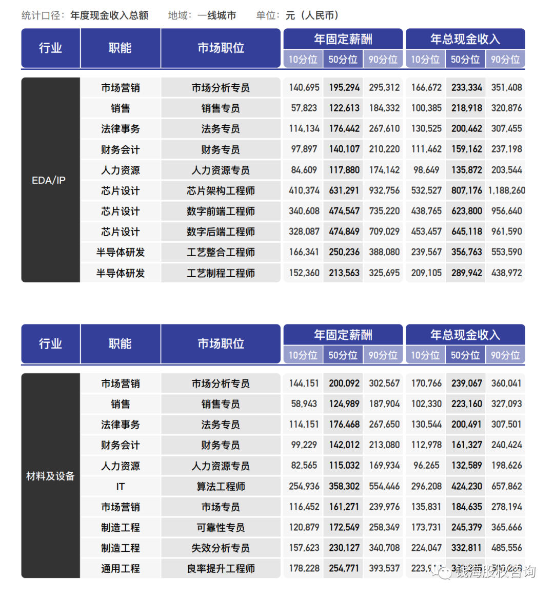 半导体行业薪酬数据(IP、材料和设备)