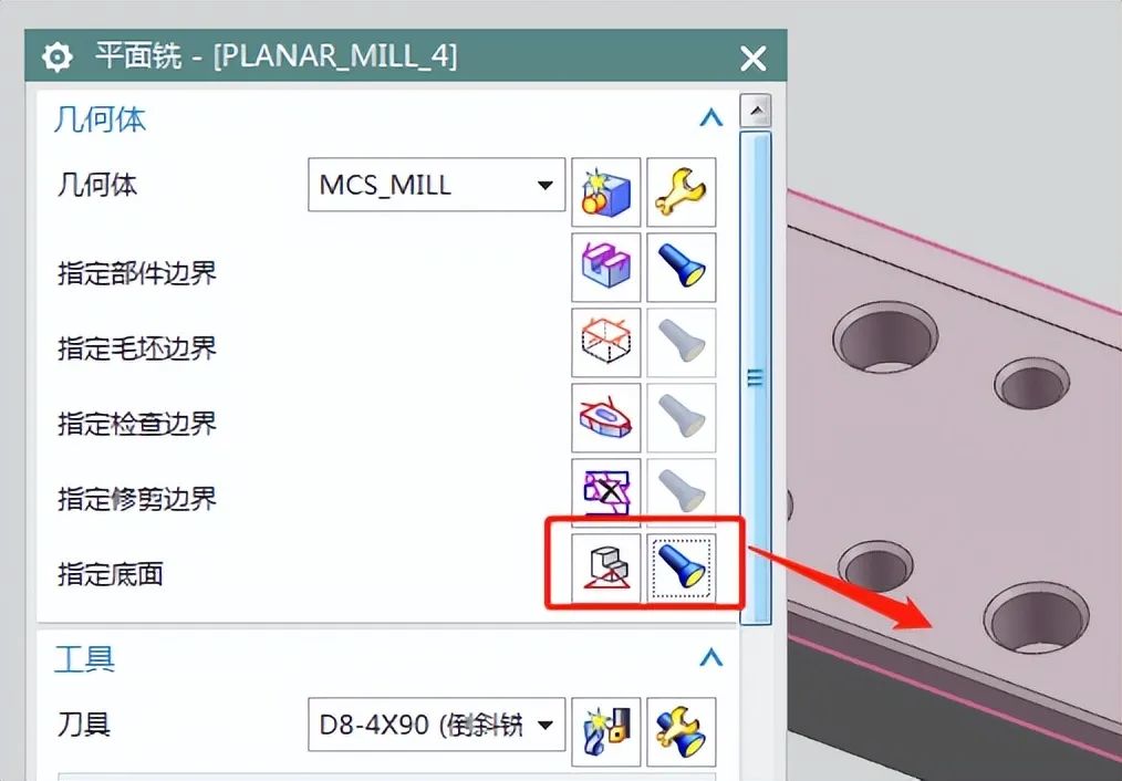3、指定底面选择边界所在的底面,如下图: