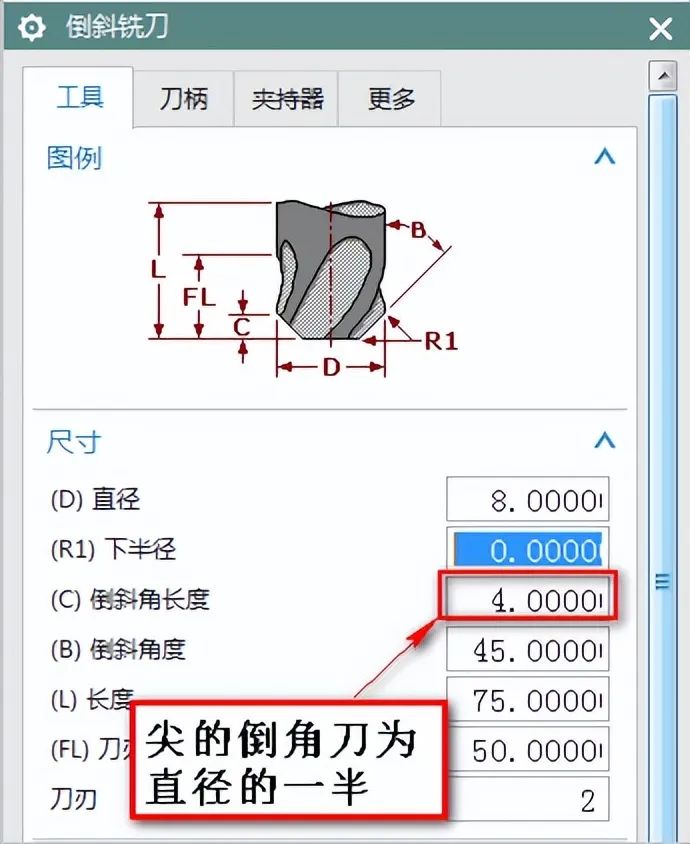 刀具定义用倒斜角刀。