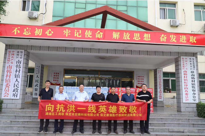 《倡议》发出后,会长杨勇峰所在单位河北圣昊光电科技有限公司闻讯而动,立即捐助价值167200元的纳安科技消杀物品对口支援涿州抗洪救灾。常务副会长王建红单位保定宏腾科技有限公司,先后到保定满城区南韩村镇和神星镇慰问奋战在抗洪抢险一线的干部职工,并送去100箱方便面和200件矿泉水等慰问品,用实际行动助力满城区抗洪救灾,彰显了秦商民营企业家无私的大爱精神与高尚情怀,展示了勇于担当、乐于奉献的时代风采。