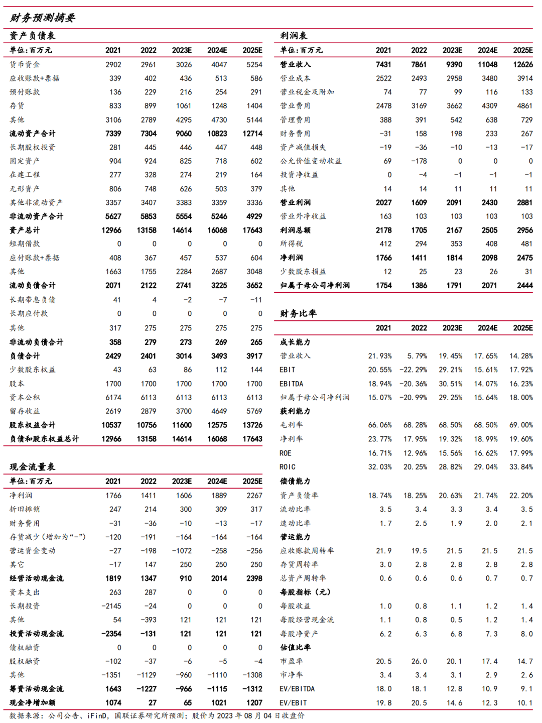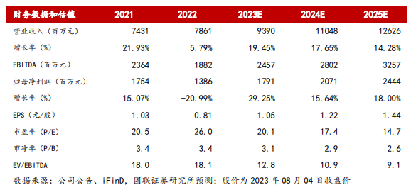 我们预计公司2023-2025年收入为93.9/110.5/126.3亿元,同比增速分别为+19.5%/17.7%/14.3%,归母净利润为17.9/20.7/24.4亿元,同比增速分别为+29.3%/15.6%/18.0%,EPS分别为1.1/1.2/1.4元/股,3年CAGR为20.74%。绝对估值法测得每股价值为25.86元,可比公司2023年平均PE为18.38倍,鉴于公司在国内VDS领域领先优势稳固,综合绝对估值法和相对估值法,我们给予公司2023年25倍PE,目标价26.34元,维持“买入”评级。