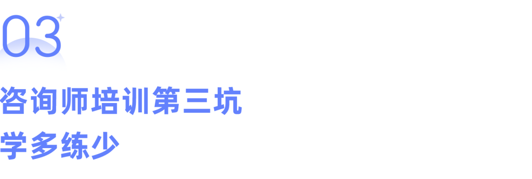 新人刚入门的时候,要睁大眼睛,谨防被骗,挺多有这个经历和潜力做咨询师的人,就是因为刚入门,不了解咨询师职业学习的成长路径,不小心被割了韭菜,走了弯路,花了很多冤枉钱,也还没学到真本事。