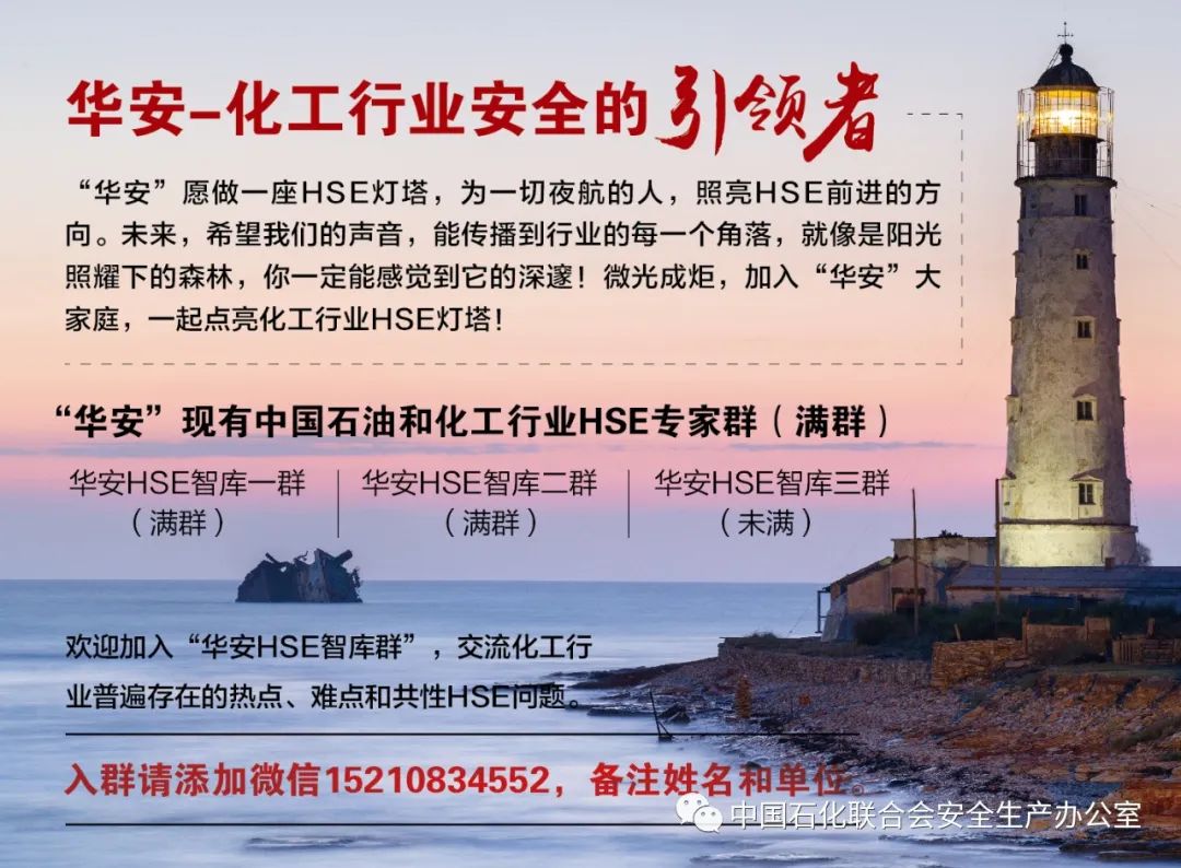 声明:以上内容整理自石化联合会“华安HSE智库群”日常研讨交流内容,不代表任何监管部门的观点,仅供业内人士参考!