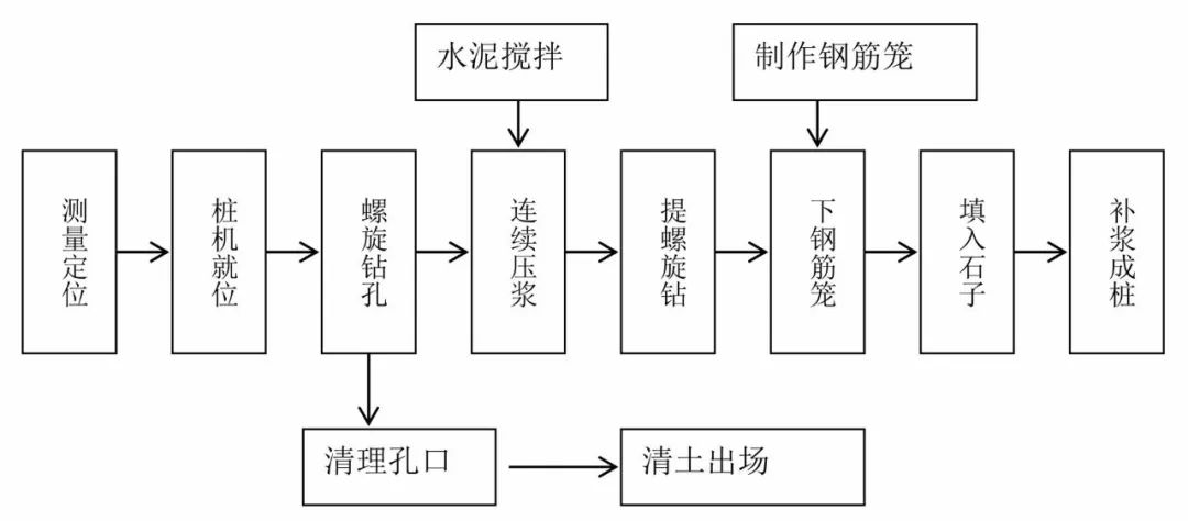 ⑦ 长螺旋压灌砼桩施工工艺流程图