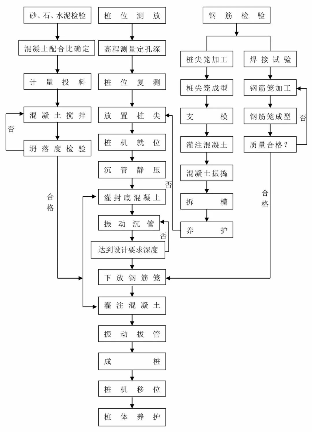 ⑤ 沉管灌注桩施工工艺流程图