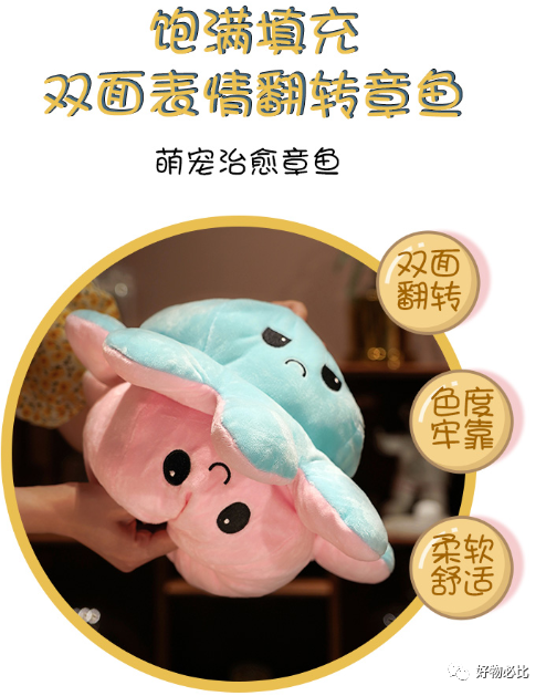 这款章鱼毛绒玩具以其超级可爱的外观受到了广大消费者的喜爱。它的表面面料非常柔软,抱在怀里特别舒适顺滑,能够有效缓解工作压力。无论年龄大小,都能够享受到这款毛绒玩具带来的乐趣。它一面是笑脸,一面是哭脸,随时了解孩子的心情,给人一种亲切感。同时,这款毛绒玩具也非常实用,填充物采用优质羽绒,填充饱满,长时间使用也不会塌。可当作抱枕使用。而且,它不仅具有有趣的双面表情,日常清洗也非常简单,晾晒时很容易干燥,而且还不易变形。总之,这款毛绒玩具可爱又实用,是一款不可错过的解压良品。