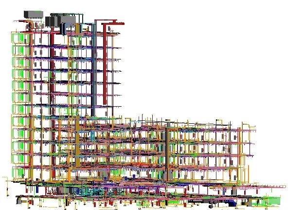 1. 对建筑物内的机电管线进行最佳排位,最大程度减少管道所占空间,提高天花的吊顶高度。要求我们具备空间意识,对净高尤其重视。净高计算时,要按“层高—梁高=净高”。计算机电净高时,尤其注意扣除地面装饰完成面及管线支吊架占据空间,尤其是在前期复核酒店走廊,大堂等对标高严格要求而且管线较多区域的机电净标高时,更加需要重视。通常,设计会提供梁下700左右空间作为机电管线布置空间,具体可以根据现场管线实际进行调整。