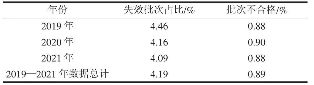 表1 2019—2021 失效批次对比
