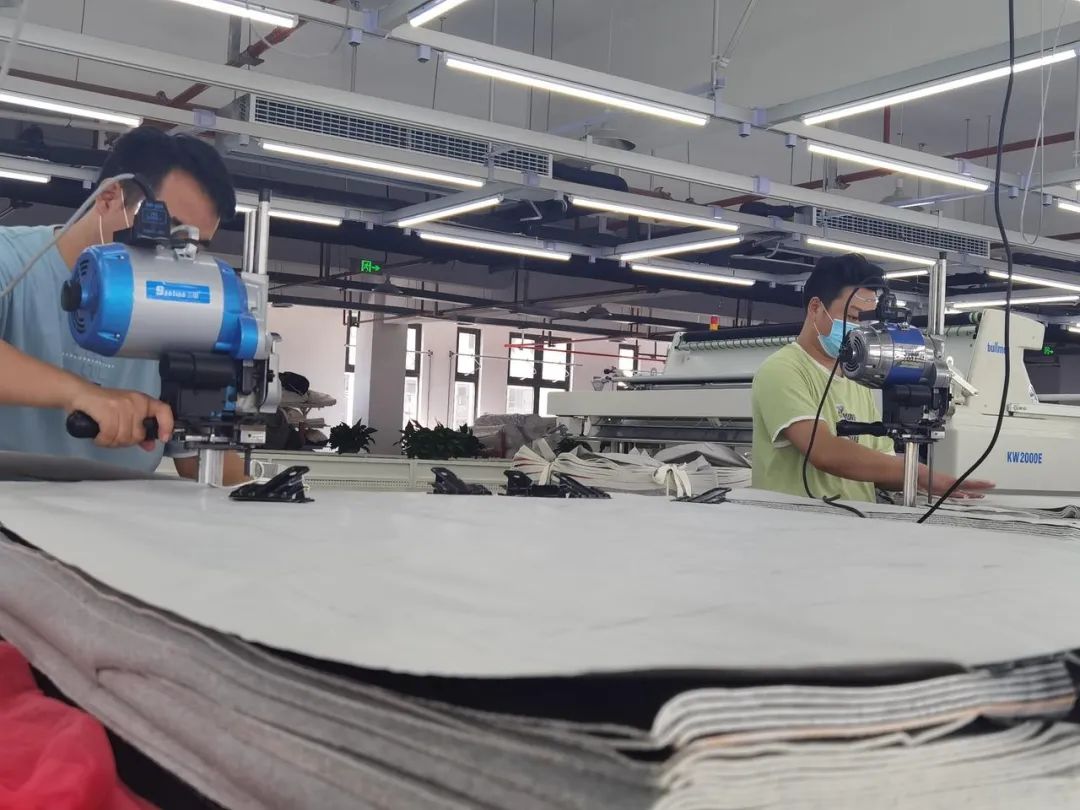 工厂目前已上线三条自动化生产线,今年将再上线三条新生产线,其中就包括自动裁床机、自动吊挂机、半自动包裹封装机等设备。
