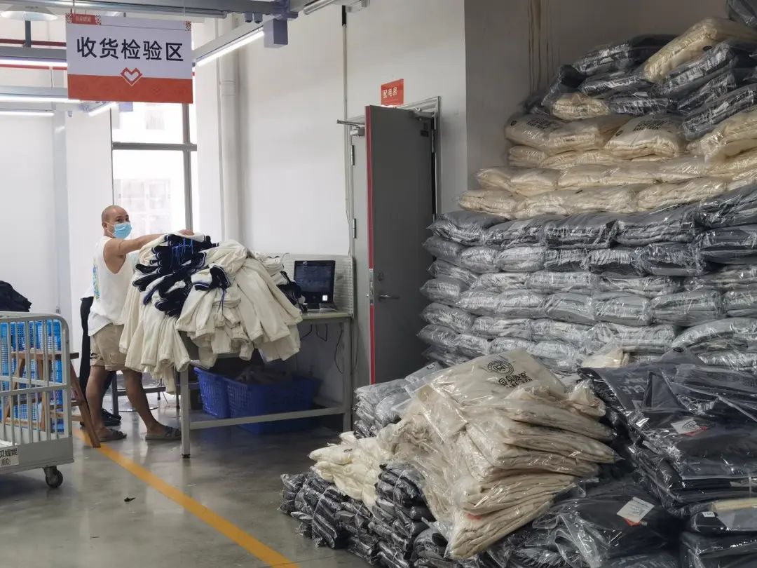 每缝制完一捆裁片,工人就交给质检区的工人对成品进行复检。质检工人同样用扫码的方式记录质检过程,给出“合格”或者“不合格”的评判。