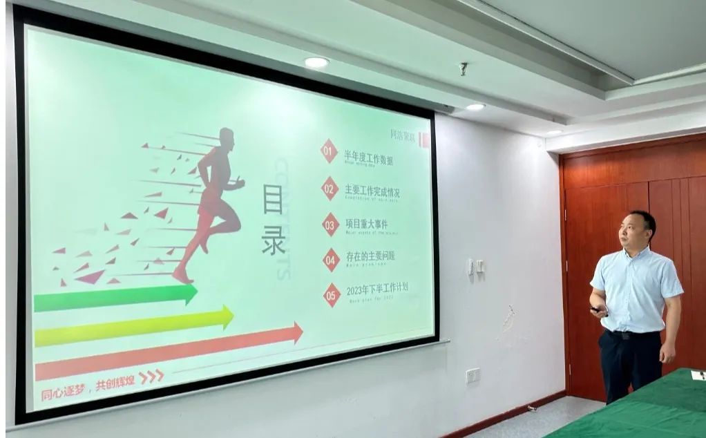 各项目部、各部门负责人依次就2023年上半年的工作完成情况及各项数据进行了分类汇报,同时总结了工作中存在的不足以及下半年的改进计划。