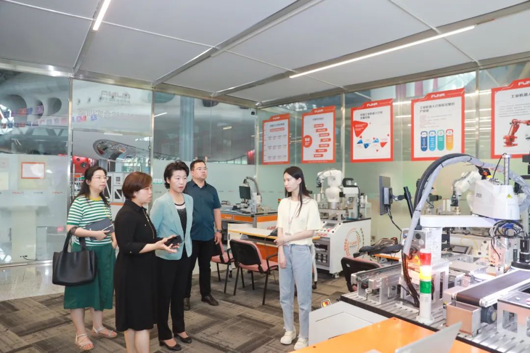 领导来宾一行考察了富纳科技智能装备展厅及工业控制实验室、工业视觉实验室、新能源测试实验室、智能制造综合实训室等,并对富纳科技在人才培养模式、科研创新成果等方面给予了充分肯定。校企双方对课题研发,技术革新,人才培养等方面进行了讨论,并达成初步合作共识。