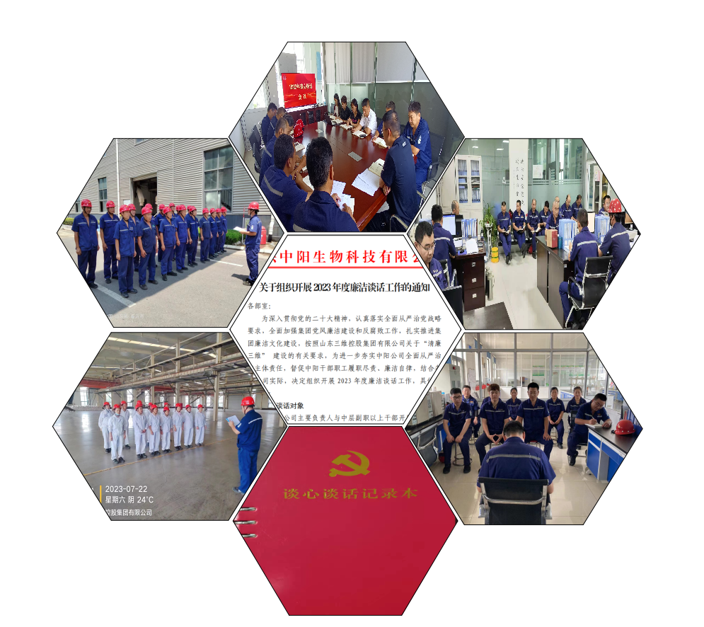为深入贯彻党的二十大精神,认真落实全面从严治党战略要求,加强中阳公司廉洁建设和反腐败工作。7月,山东中阳生物科技有限公司不断丰富廉洁文化建设载体和途径,开展丰富多彩、卓有成效的廉洁文化宣传教育活动。