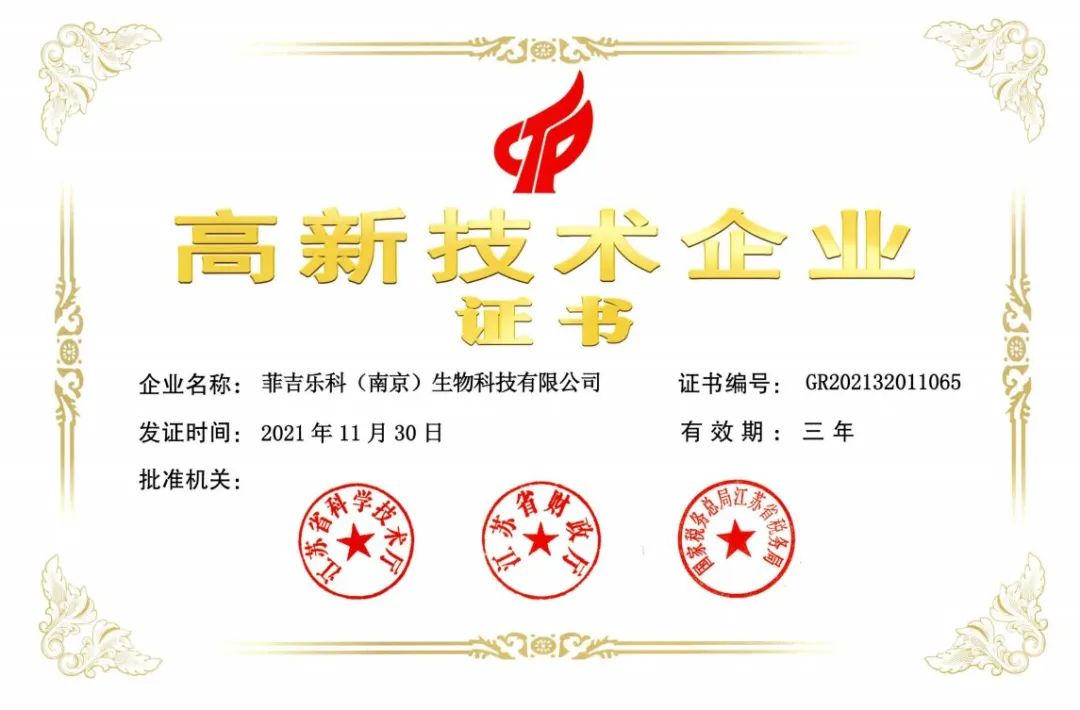 公司凭借长期的科研积累,构建起较高的技术壁垒:具有庞大的噬菌体库及细菌菌株库;获授权专利百余项;发表核心期刊科技及SCI论文数篇。菲吉乐科(中国)生物科技有限公司获得多项荣誉资质:于2019年获得未来农业食品百强年度潜力企业、嘉兴2019红船杯唯一特等奖;于2020年获得IFA 2020生物农业TOP20、3A信用企业认证,并通过了知识产权管理体系认证,知识产权评价体系符合 GB/T29490-2013;于2021年通过了国家高新技术企业认定,并获得了ISO9001质量管理体系、ISO14001环境管理体系及ISO45001职业健康安全管理体系认证;于2022年成为中国畜牧兽医学会理事单位,并荣获优质产品金鸡奖。