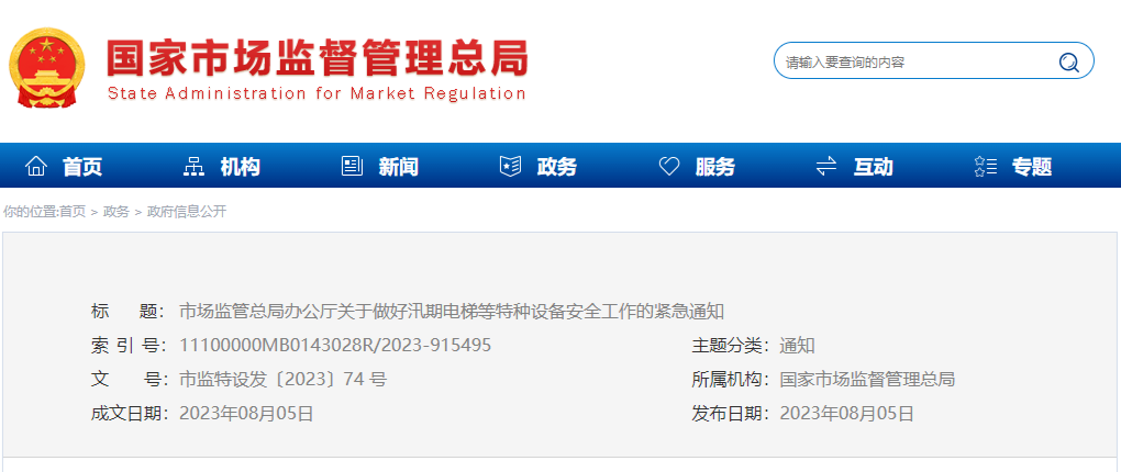 市场监管总局办公厅关于做好汛期电梯等特种设备安全工作的紧急通知