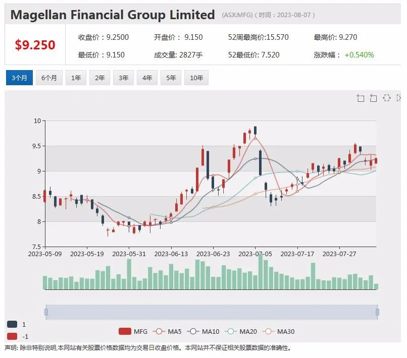 消息公布后,Magellan股价上周五早盘上涨。11:33成交价为9.22澳元,上扬0.01澳元,涨幅0.11%。该股近一年的投资回报率为亏损37.95%。