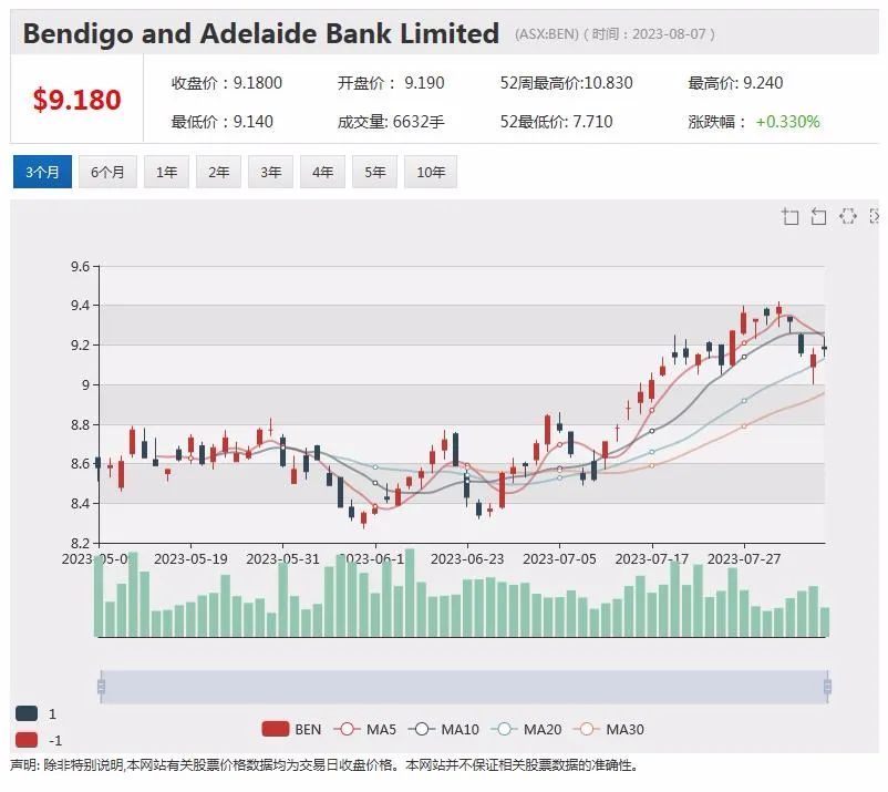 公告发布后,本迪戈银行股价上周五早盘下跌。10:50成交价为9.14澳元,下跌0.02澳元,跌幅0.22%。该股近一年的投资回报率为亏损13.77%。