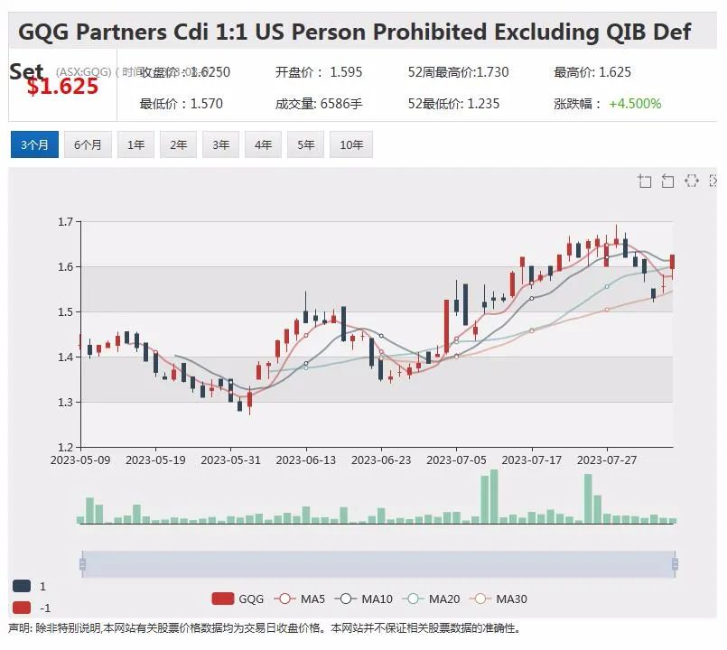 受该公告影响,GQG Partners股价周一早盘上涨。10:18成交价为1.59澳元,上扬0.035澳元,涨幅2.25%。该股近一年的投资回报率为3.25%。