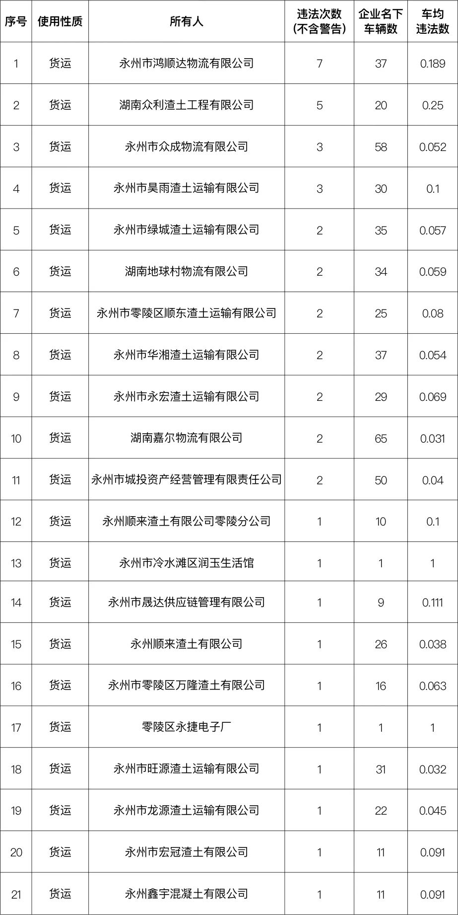(一)货运企业车辆违法情况