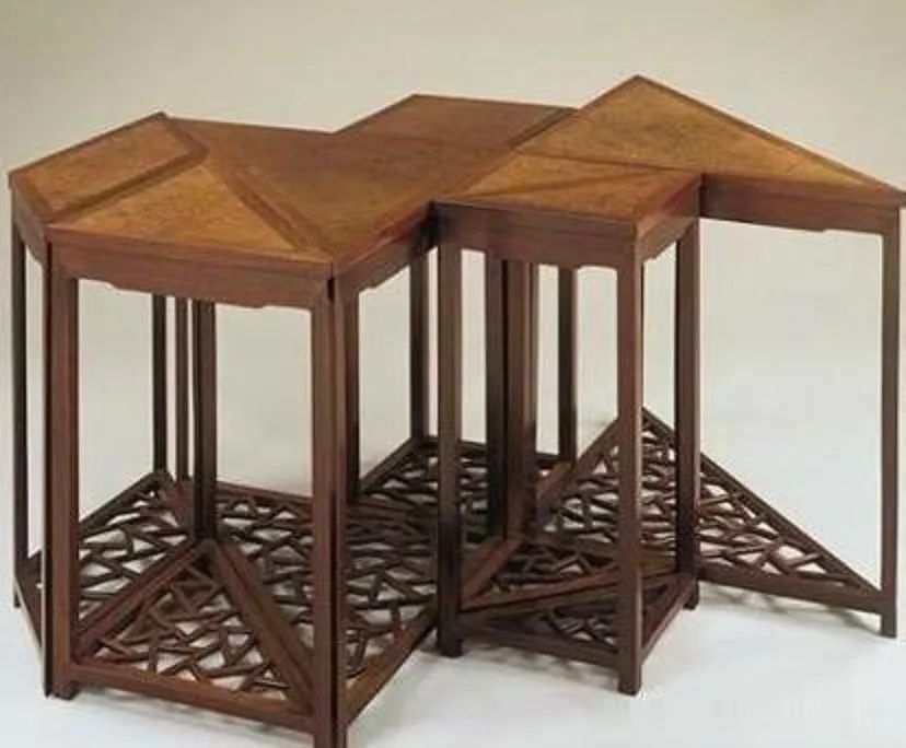 于是,他发明了一种拼接桌,由7张小桌子拼成,可以根据客人的多寡调整位置,比如3人拼成三角形,4人拼成四方形,6人拼成六方形…而黄伯思也将这张拼接桌的设计收入到中国最早的家具设计著作《燕几图》之中。