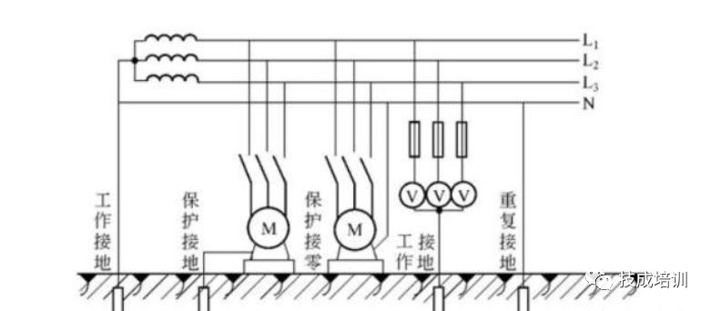 ③要求中性线必须重复接地,因为在中性线断开的情况下,接零设备外壳上都带有220V的对地电压,这是绝不允许的。