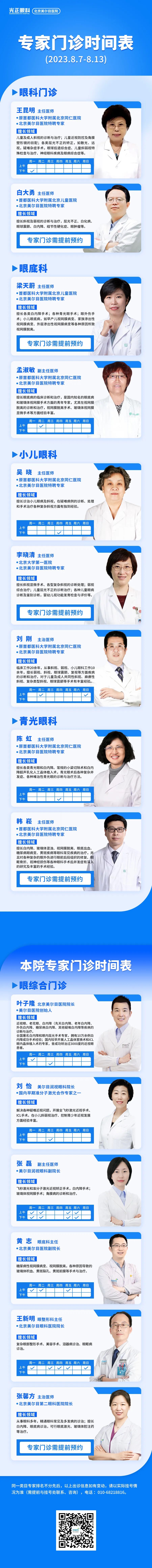 出诊表 | 北京美尔目集团8月7日~8月13日专家出诊安排