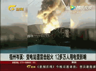 ▲变电站遭雷击起火,12万人用电受影响