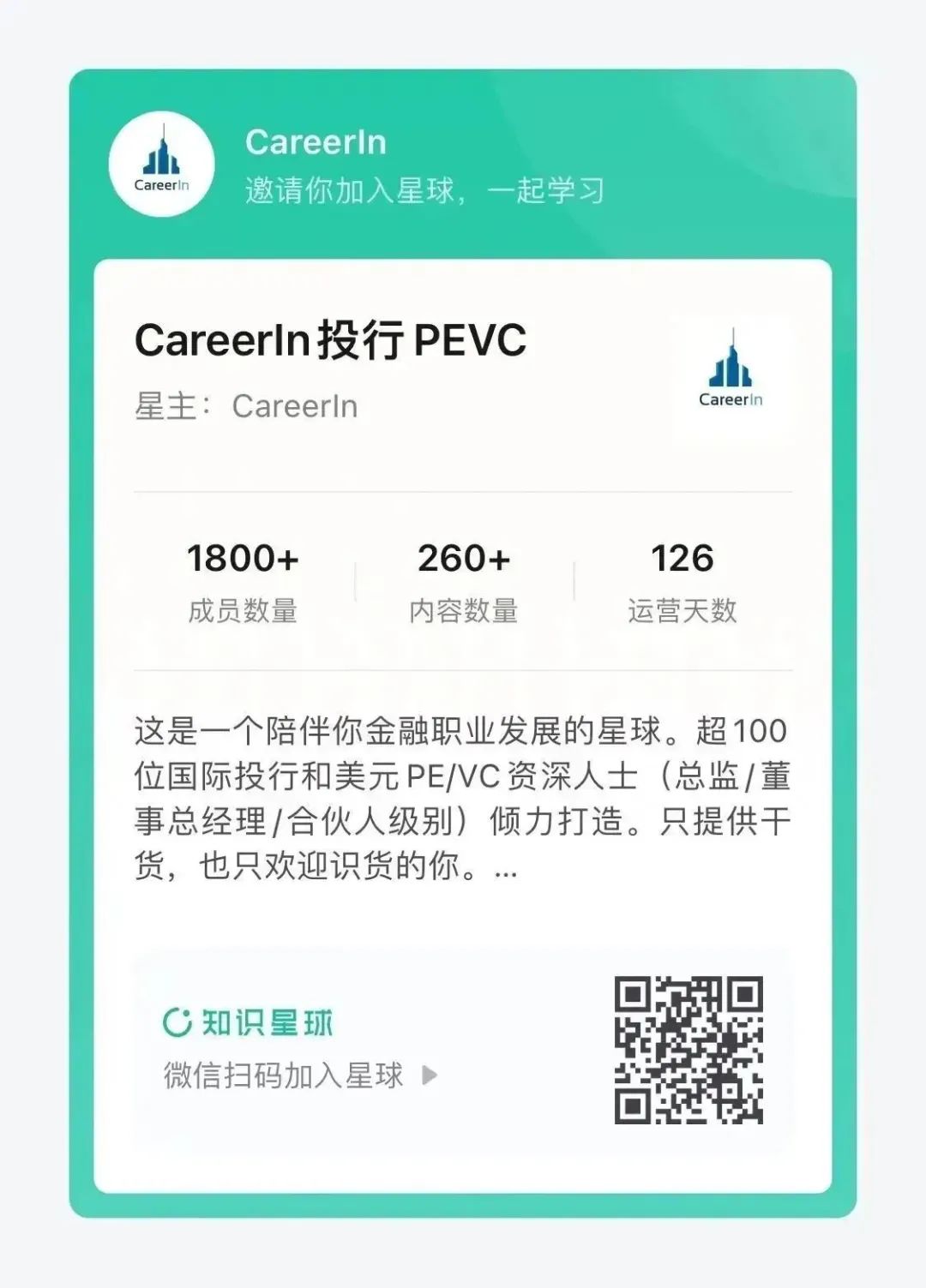别忘了关注CareerIn和CareerIn投行PEVC系列账号: