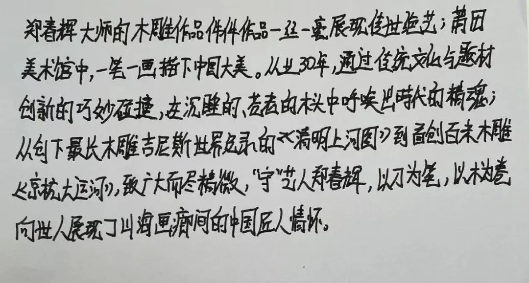 木雕艺术是永无止境的,正是这种锲而不舍的追求和探索精神,不断指引着像郑春辉这样一代又一代的工艺美术大师不断攀登新的高峰。实实在在做事,认认真真对待艺术。