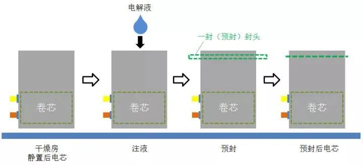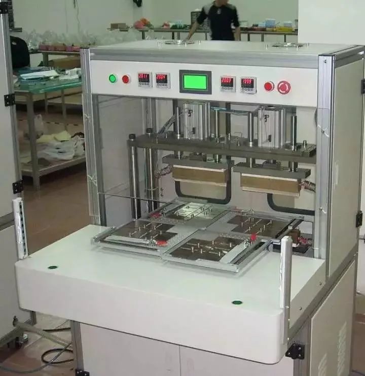 软包电芯,其实就是使用了铝塑包装膜作为包装材料的电芯。相对来说,锂离子电池的包装分为两大类,一类是软包电芯,一类是金属外壳电芯。金属外壳电芯又包括了钢壳与铝壳等等,近年来由于特殊需要有的电芯采用塑料外壳的,也可以划为此类。二者的差别除了外壳材料不同,决定了其封装方式也不同。软包电芯采用的是热封装,而金属外壳电芯一般采用焊接(激光焊)。软包电芯可以采用热封装的原因是其使用了铝塑包装膜这种材料。铝塑包装膜(简称铝塑膜)的构成见图,其截面上来看有三层构成:尼龙层、Al层与PP层。三层各有各的作用,首先尼龙层是保证了铝塑膜的外形,保证在制造成锂离子电池之前,膜不会发生变形。Al层就是一层金属Al构成,其作用是防止水的渗入。锂离子电池很怕水,一般要求极片含水量都在PPM级,所以包装膜一定能够挡住水气的渗入。尼龙不防水,无法起到保护作用。而金属Al在室温下会与空气中的氧反应生成一层致密的氧化膜,导致水气无法渗入,保护了电芯的内部。Al层在铝塑膜成型的时候还提供了冲坑的塑性,这个详见第3点。PP是聚丙烯的缩写,这种材料的特性是在一百多摄氏度的温度下会发生熔化,并且具有黏性。所以电池的热封装主要靠的就是PP层在封头加热的作用下熔化黏合在一起,然后封头撤去,降温就固化黏结了。铝塑膜看上去很简单,实际做起来,如何把三层材料均匀地、牢固地结合在一起也不是那么容易的事。很遗憾的是,现在质量好的铝塑膜基本上都是日本进口的,国产的不是没有,但质量还有待改进。软包电芯可以根据客户的需求设计成不同的尺寸,当外形尺寸设计好后,就需要开具相应的模具,使铝塑膜成型。成型工序也叫作冲坑(其实个人觉得应该是“铳坑”,但大家都这么写就随俗吧),顾名思义,就是用成型模具在加热的情况下,在铝塑膜上冲出一个能够装卷芯的坑,具体的见下图。铝塑膜冲好并裁剪成型后,一般称为Pocket袋,见下图所示。一般在电芯较薄的时候选择冲单坑(下图左),公众号动力电池BMS,在电芯较厚的时候选择冲双坑(下图右),因为一边的变形量太大会突破铝塑膜的变形极限而导致破裂。有时候根据设计的需要,会在气袋的位置再冲一个小坑,以扩大气袋的体积。终于讲到正题了(你是跑题有多厉害!),顶侧封工序是软包锂离子电芯的第一道封装工序。顶侧封实际包含了两个工序,顶封与侧封。首先要把卷绕好的卷芯放到冲好的坑里,然后沿虚线位置将包装膜对折,如下图所示。下面这种图是铝塑膜装入卷芯后,需要封装的几个位置,包括顶封区、侧封区、一封区与二封区。下面分别进行介绍。把卷芯放到坑中之后,就把整个铝塑膜可以放到夹具中,在顶侧封机里进行顶封与侧封了。顶侧封机是这样子的:图中这种型号的顶侧封机带四个夹具,左边那个工位是顶封,右边那个工位是侧封。那两块黄色的金属是上封头,下面还有一个下封头,封装的时候两个封头带有一定的温度(一般在180℃左右),合拢时压在铝塑膜上,铝塑膜的PP层就熔化然后黏结在一起了,这样就封装OK了。侧封没有什么太多好说的(边电压神马的扯得太远就不讲了),主要来说说顶封,顶封区域的示意图如下图所示。顶封是要封住极耳的,极耳是金属(正极铝,负极镍),怎么跟PP封装到一起呢?这就要靠极耳上的一个小部件—极耳胶来完成了。极耳胶具体的结构我不是很清楚,希望有懂行的人来补充。我只知道它也有PP的成本,也就是说在加热时能够熔化黏结。在极耳位的封装见下图中圆圈部分所示。封装时,极耳胶中的PP与铝塑膜的PP层熔化黏结,形成了有效的封装结构。软包电芯在顶侧封之后,需要做X-ray检查其卷芯的平行度,然后就进干燥房除水气去了。在干燥房静置若干时间时候,就进入了注液与预封工序。通过上面的介绍我们知道,电芯在顶侧封完成之后,就只剩下气袋那边的一个开口,这个开口就是用来注液的。在注液完成之后,需要马上进行气袋边的预封,也叫作一封。一封封装完成后,电芯从理论上来说,内部就是完全与外部环境隔绝了。一封的封装原理与顶侧封相同,这里就不赘述了。在注液与一封完成后,首先需要将电芯进行静置,根据工艺的不同会分为高温静置与常温静置,静置的目的是让注入的电解液充分浸润极片。然后电芯就可以拿去做化成了。上图是软包电芯的化成柜,其实就是一个充放电的装置,我找了好久没有找到带电芯的图片,大家想想一下电芯夹在上面的画面就OK了。化成就是对电芯的首次充电,但不会充到使用的最高电压,充电的电流也非常小。化成的目的是让电极表面形成稳定的SEI膜,也就是相当于一个把电芯“激活”的过程。在这个过程中,会产生一定量的气体,这也就是为什么铝塑膜要预留一个气袋。有些工厂的工艺会使用夹具化成,即把电芯夹在夹具里(有时候图简便就用玻璃板,然后上钢夹子)再上柜化成,这样产生的气体会被充分地挤到旁边的气袋中去,同时化成后的电极界面也更佳。在化成后有些电芯,尤其是厚电芯,由于内部应力较大,可能会产生一定的变形。所以某些工厂会在化成后设置一个夹具整形的工序,也叫作夹具baking(烘烤)。刚才说了化成过程中会产生气体,所以我们要将气体抽出然后再进行第二次封装。在这里有些公司成为两个工序:Degassing(排气)与二封,还有后面一个剪气袋的工序,这里我就一起