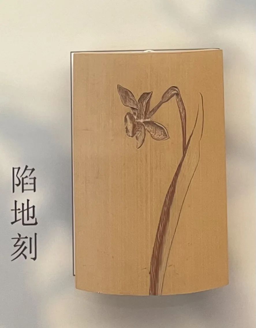 浅刻,刻痕很浅,往往需要在高光下才能看清刀痕的一种刻法,为阴刻之最浅者。大多用于臂搁和扇骨,以表现画的笔墨意趣为主。